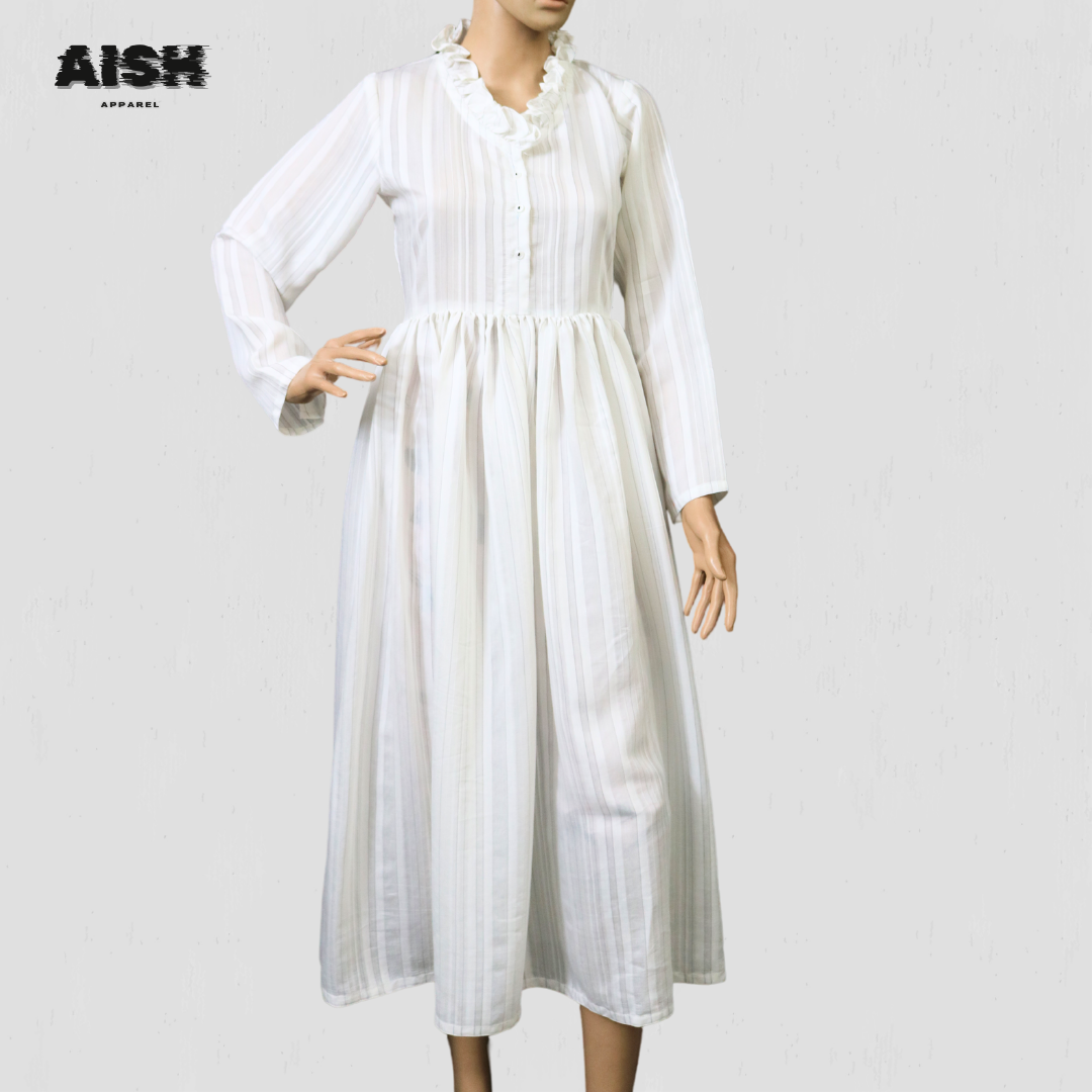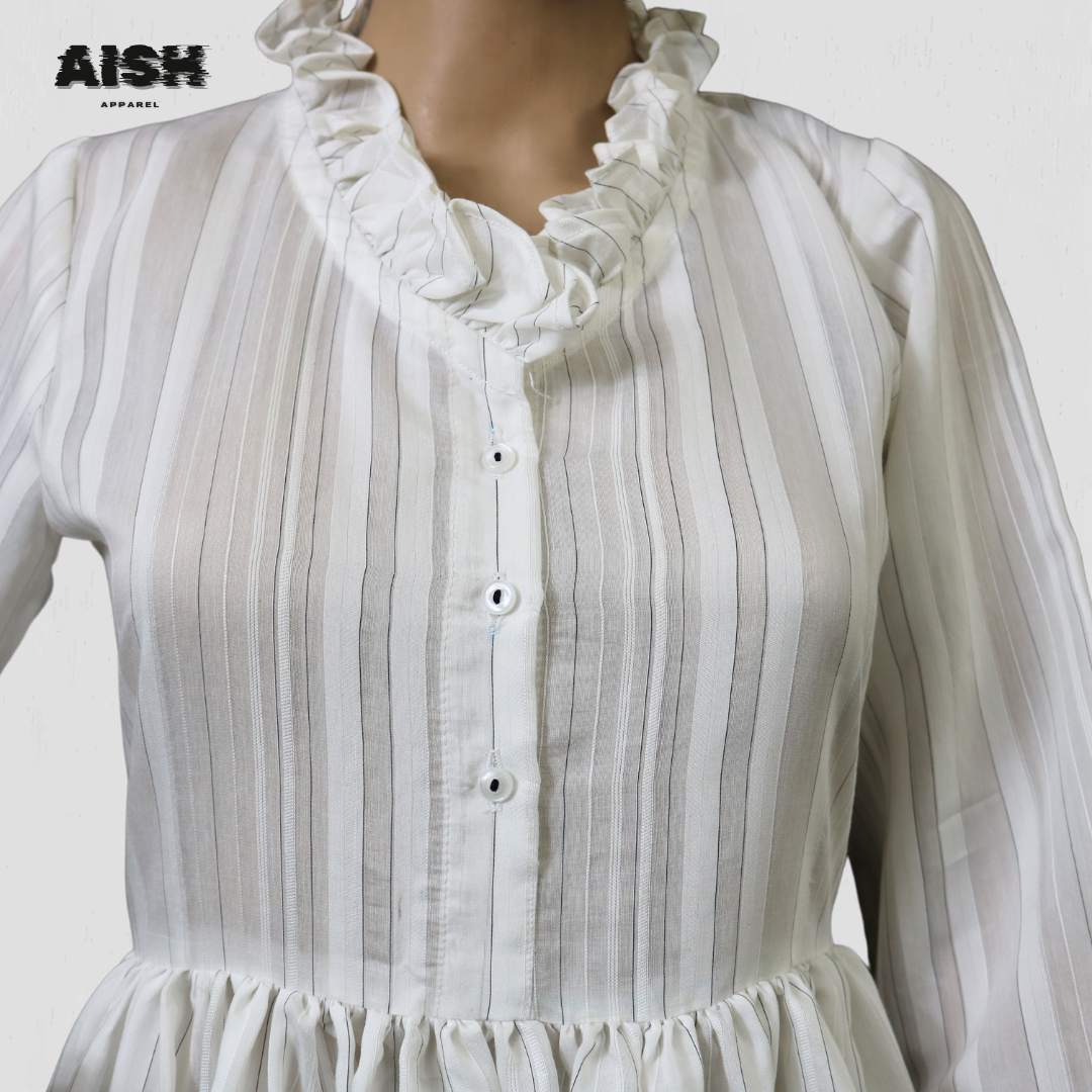 This piece boasts a tall, elegant silhouette that complements all body types effortlessly. The standout neck detail adds a classic and stylish charm, blending comfort with sophistication. Practicality meets style with its buttoned closure, ensuring easy wear and full coverage with its long sleeves. The design achieves a balance between modern trends and timeless elegance, making it a refined addition to any wardrobe.