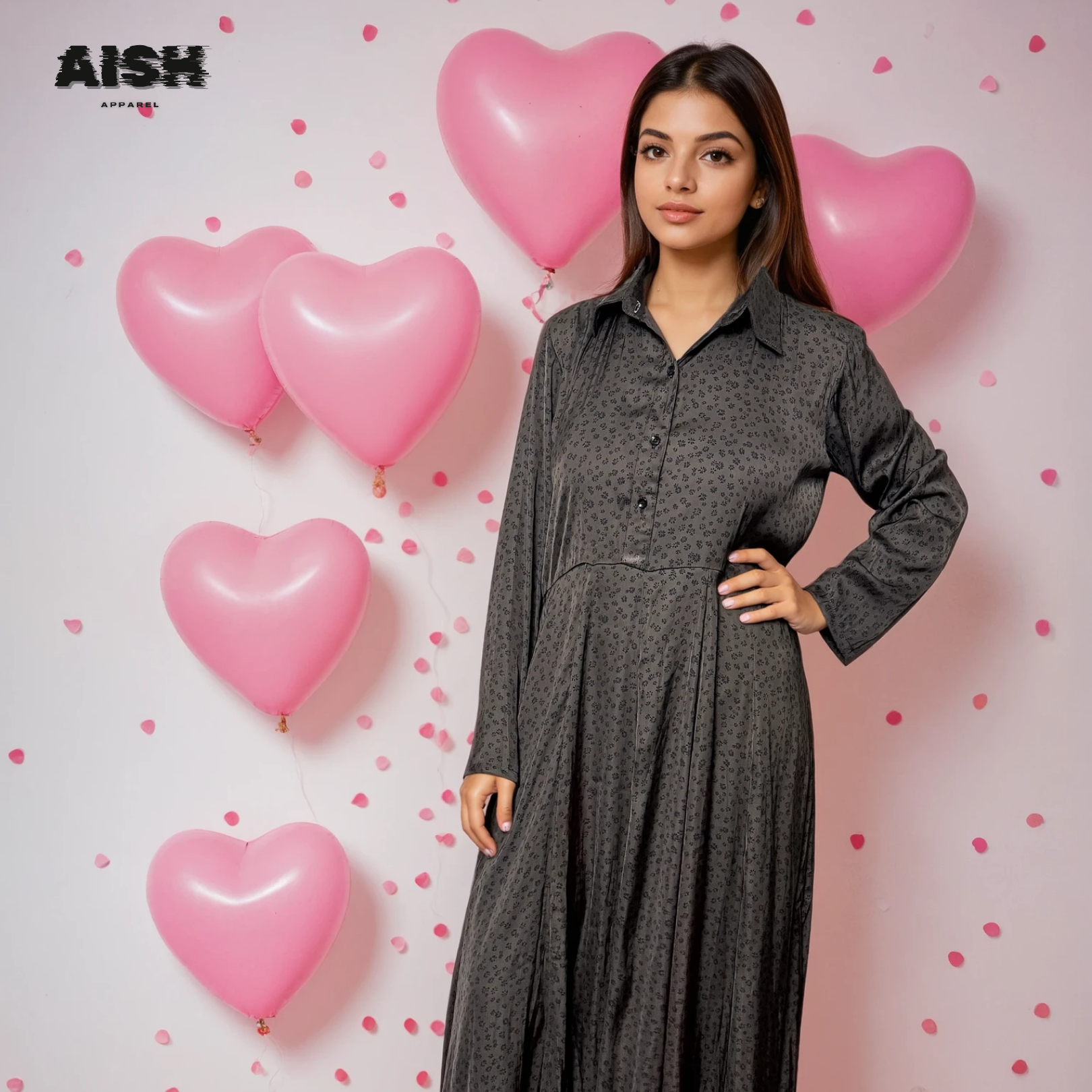A luxurious brown silk frock featuring a sleek collar and elegant button detailing, exuding timeless sophistication. The smooth, flowing silk fabric offers a graceful drape, while the thoughtful design combines classic charm with contemporary style. Perfect for both formal events and refined everyday wear.